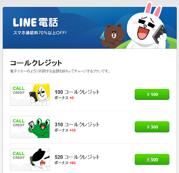 ・라인 웹스토어와 안드로이드 앱으로 구매한 콜 크레딧은 구매일부터 180일 동안 이용 가능합니다.
