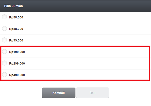 Batas maksimum pembelian/pengisian kredit (isi ulang) telah dinaikkan menjadi Rp 499,000!