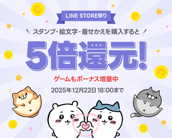 【LINE STORE祭り】超おトク!!LINEスタンプ購入するとLINEクレジット5倍還元!LINEゲームのボーナスも大増量(12/19~12/22)