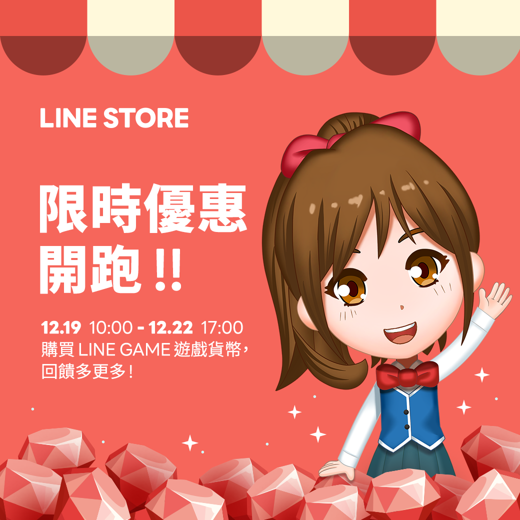 現在於LINE STORE購買遊戲內虛寶,即可獲得比平常更多的回饋!千萬別錯過這大好機會~