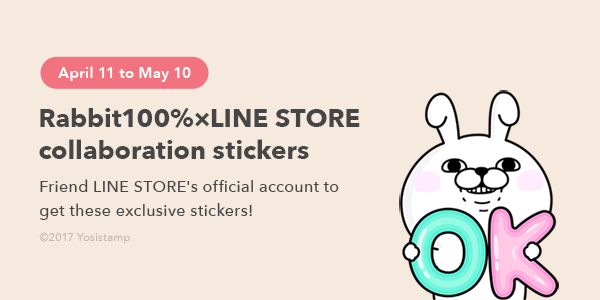 Akun resmi LINE STORE yang selalu mengirim pemberitahuan stiker baru dan info acara promo yang menguntungkan berkolaborasi dengan "Rabbit 100%" karya YOSISTAMP, ilustrator stiker kreator LINE terkenal!