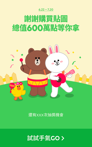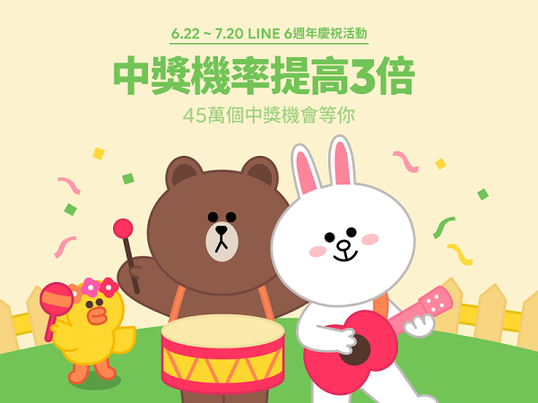 歡慶LINE六周年!買貼圖試手氣,總值六百萬點等著你(6月22日~7月20日)