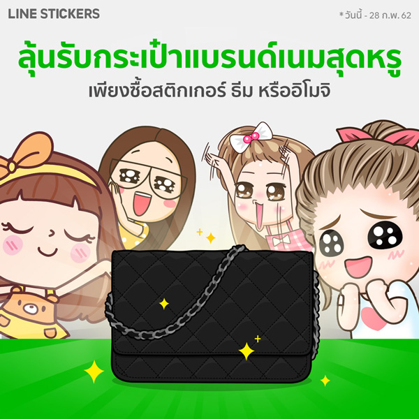 ลุ้นเป็นเจ้าของกระเป๋าแบรนด์เนมสุดหรูง่ายๆ! เพียงซื้อสติกเกอร์ ธีม หรืออิโมจิ 14 - 28 ก.พ. 62