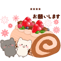 猫とお菓子。毎日の挨拶,感謝,お祝い等,日常会話に。お名前など好きな言葉を入力できます(何度でも変更可能)※ネコたちと幸せ♥チョコスイーツのカスタムスタンプ版です。